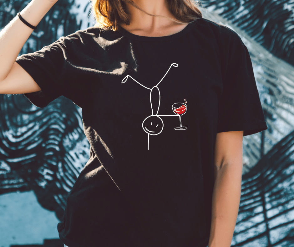 Life’s a balancing act… especially without wine! 🤸🍷 Our Cartwheel Stickman With Wine Glasses T-shirt is perfect for the flexible wine lover who knows how to flip, sip, and stay fabulous.