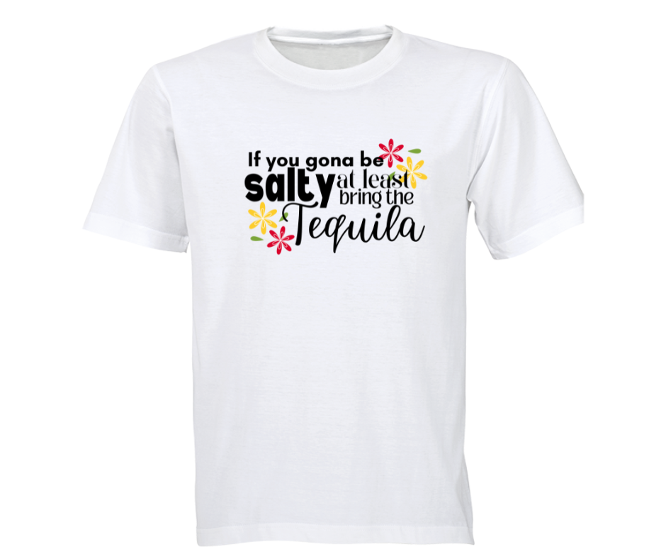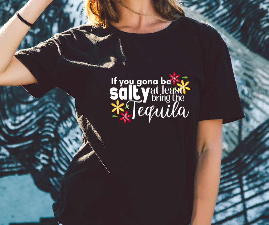Because if there’s salt, there better be tequila! 🍹🧂 Our “If You’re Gonna Be Salty, Bring the Tequila” T-shirt is a fun and sassy way to remind people that tequila makes everything better! Whether you’re serving looks, throwing shade, or just here for the good vibes, this tee is your perfect fit.