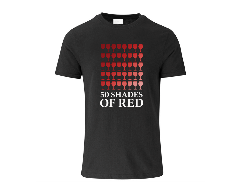 Uncork your style with our “50 Shades of Red” T-shirt – a must-have for wine lovers who appreciate a bold glass of red and a touch of humour! 🍷 Whether you’re sipping on Cabernet, Merlot, Shiraz, or Pinotage, this shirt is perfect for those who take their wine seriously but not themselves.