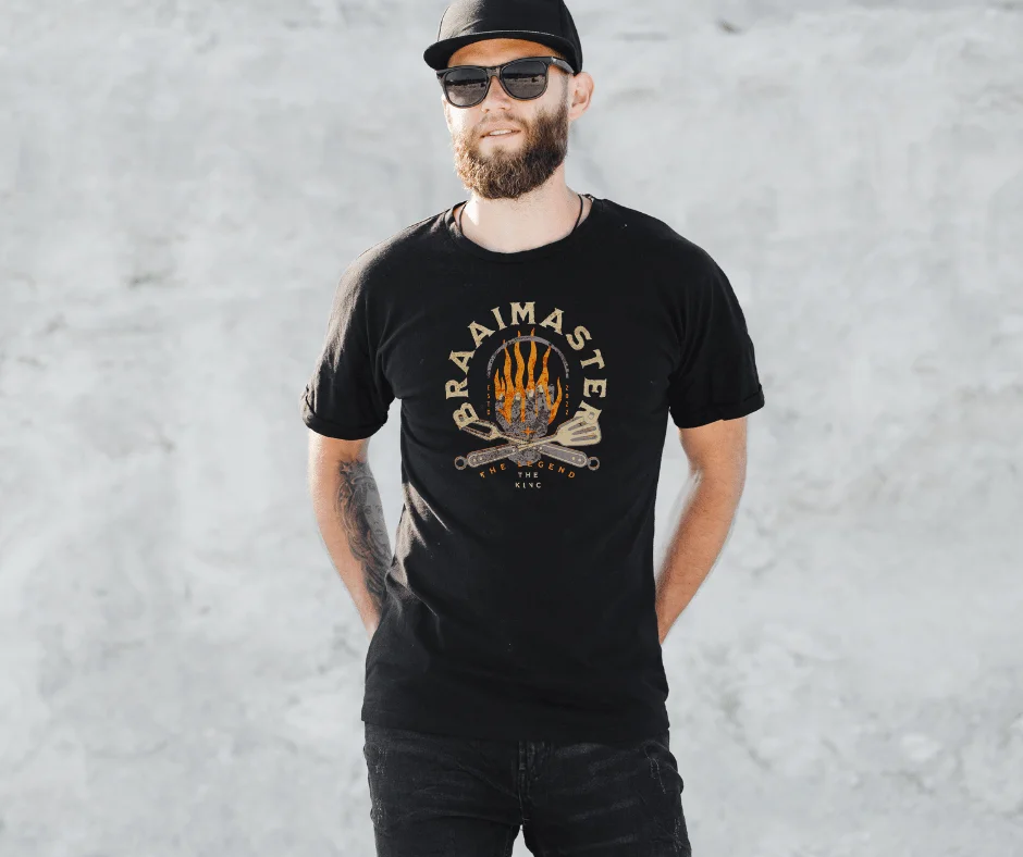 Whether it’s Heritage Day, a weekend rugby match, or just another excuse to light the fire, this shirt makes your title official. Confident, classic, and proudly South African — because braai isn’t just cooking… it’s culture.