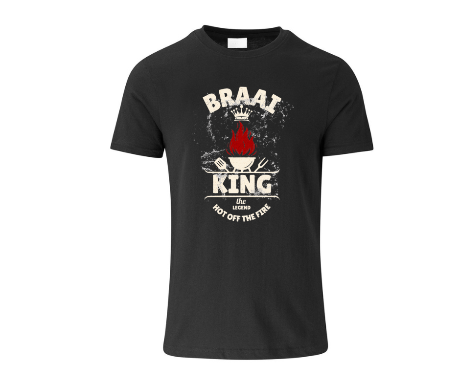 🔥 Tongs in hand. Fire in his soul. This one’s for the Braai Master in your life. A bold graphic with ‘Braai King – The Legend’ lets him claim the flame.