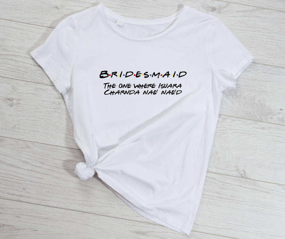 🖋️ Add your name to customize the shirt! (e.g., BRIDEMAID – The One Where Isaura Charda Nae Nae’d)