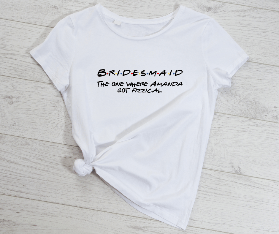 🖋️ Add your name to customize the shirt! (e.g., BRIDEMAID – The One Where Jessica Gets Fizzical)