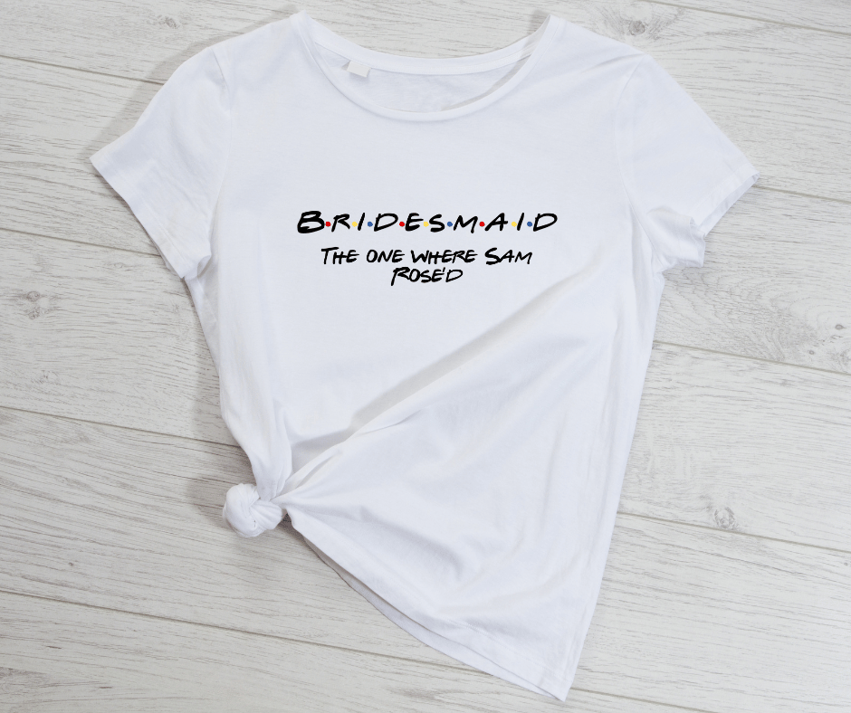 🖋️ Add your name to customize the shirt! (e.g., BRIDEMAID – The One Where Sam Rose’d)