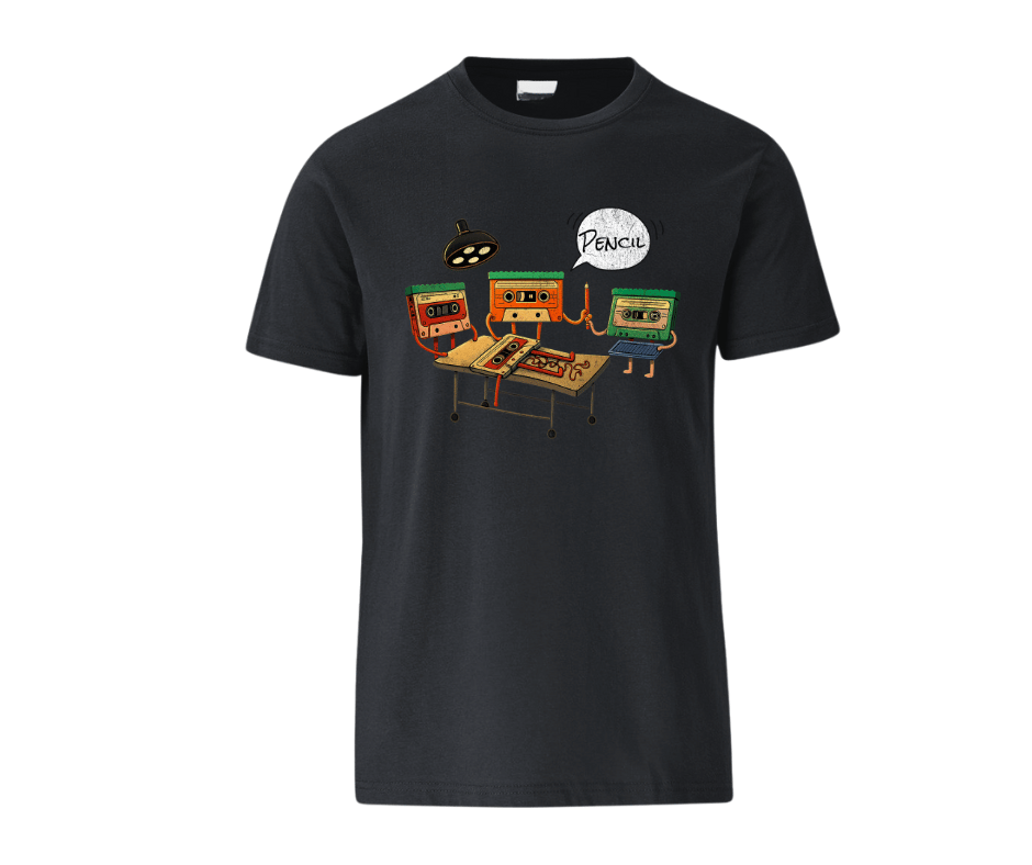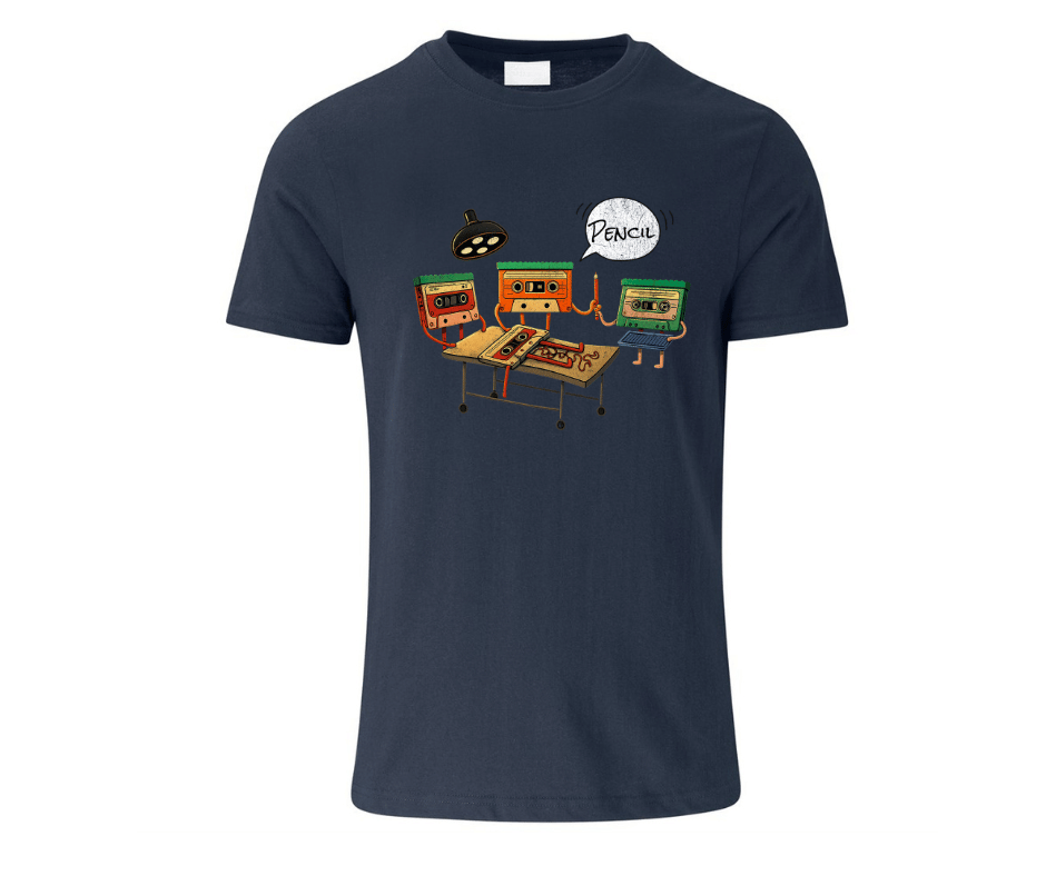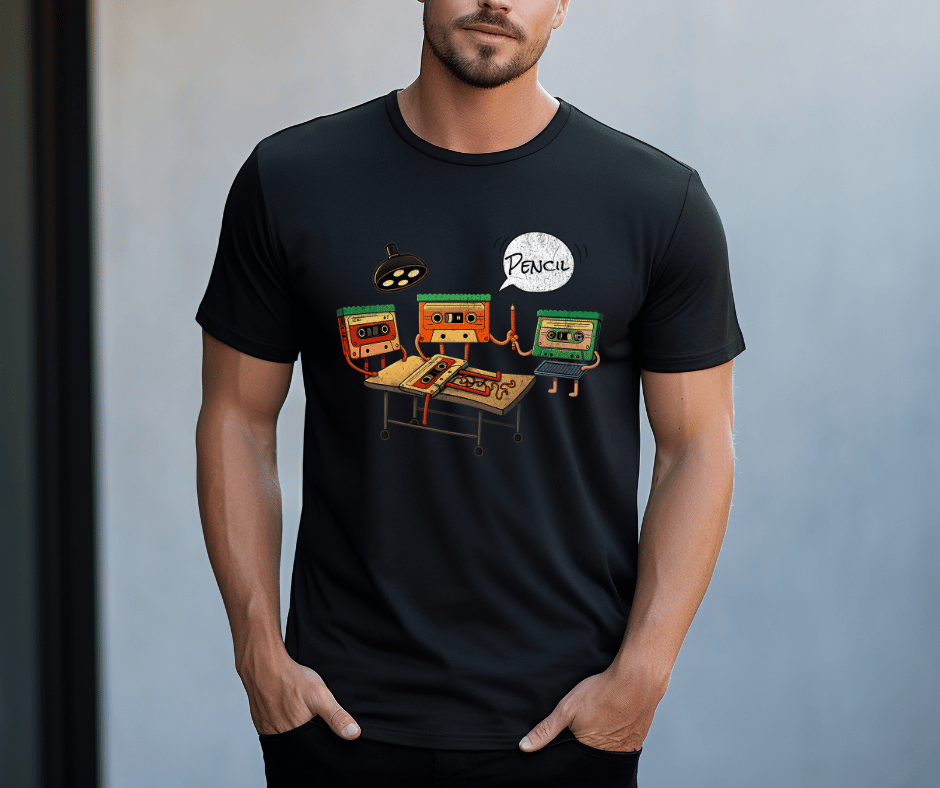 This hilarious retro tee features vintage cassette tapes performing βemergency surgeryβ on a tape disaster β and of course, the only tool that can save the day: a pencil. πΆπ