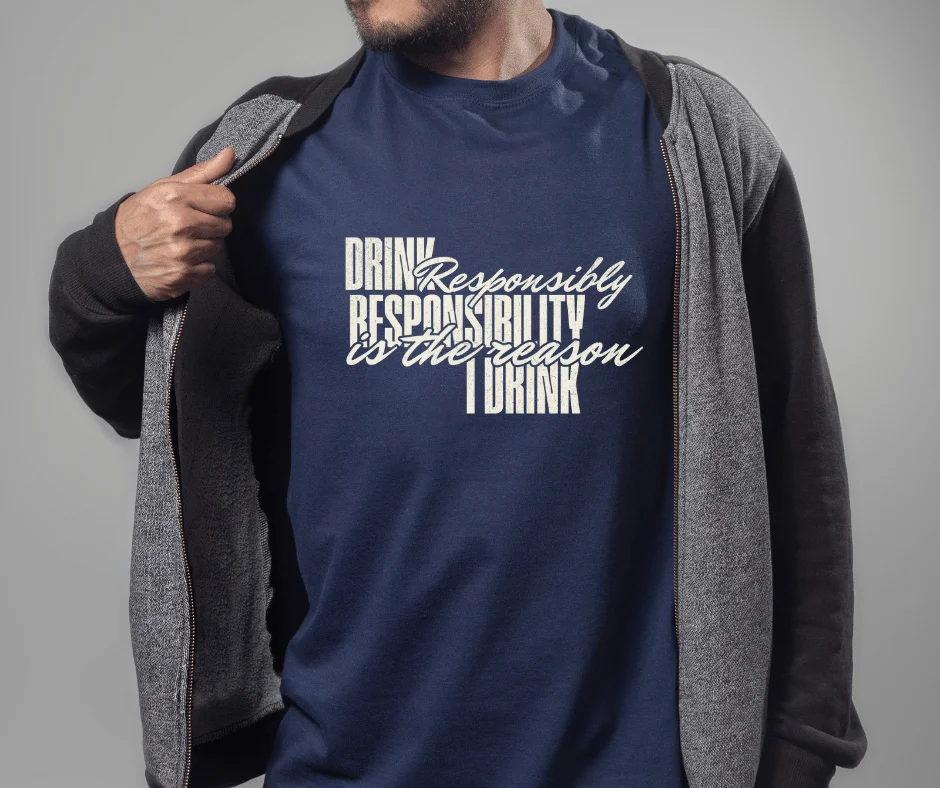 The Drink Responsibly… Responsibly Is the Reason I Drink T-Shirt is made for those who appreciate a good glass, a good laugh, and a little truth served straight.
