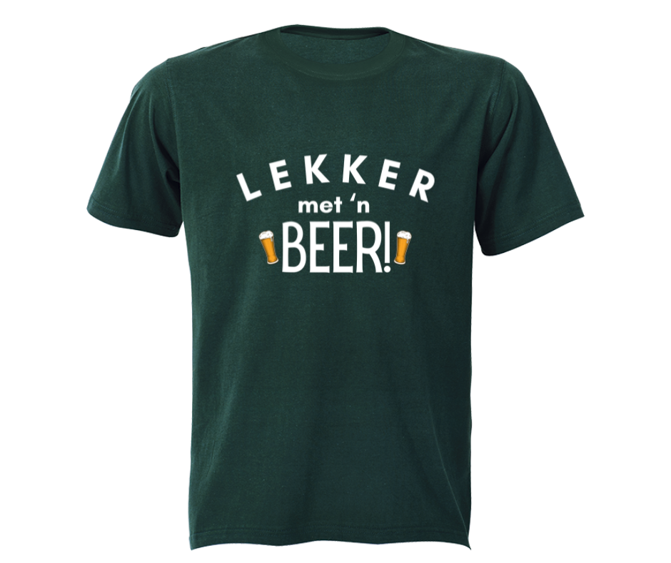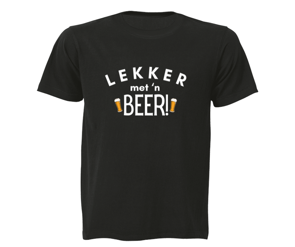 Because everything is just “lekker met beer”! 🍻 This proudly South African T-shirt is for those who believe that beer makes every moment better—braais, rugby, weekends, and even Mondays.