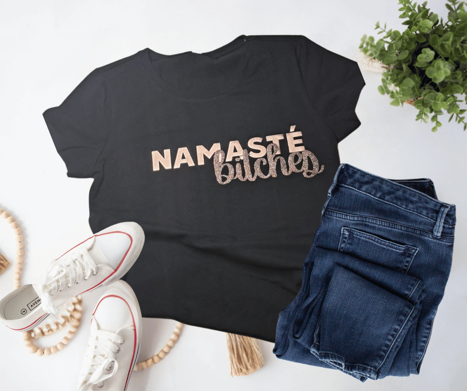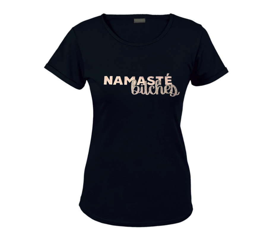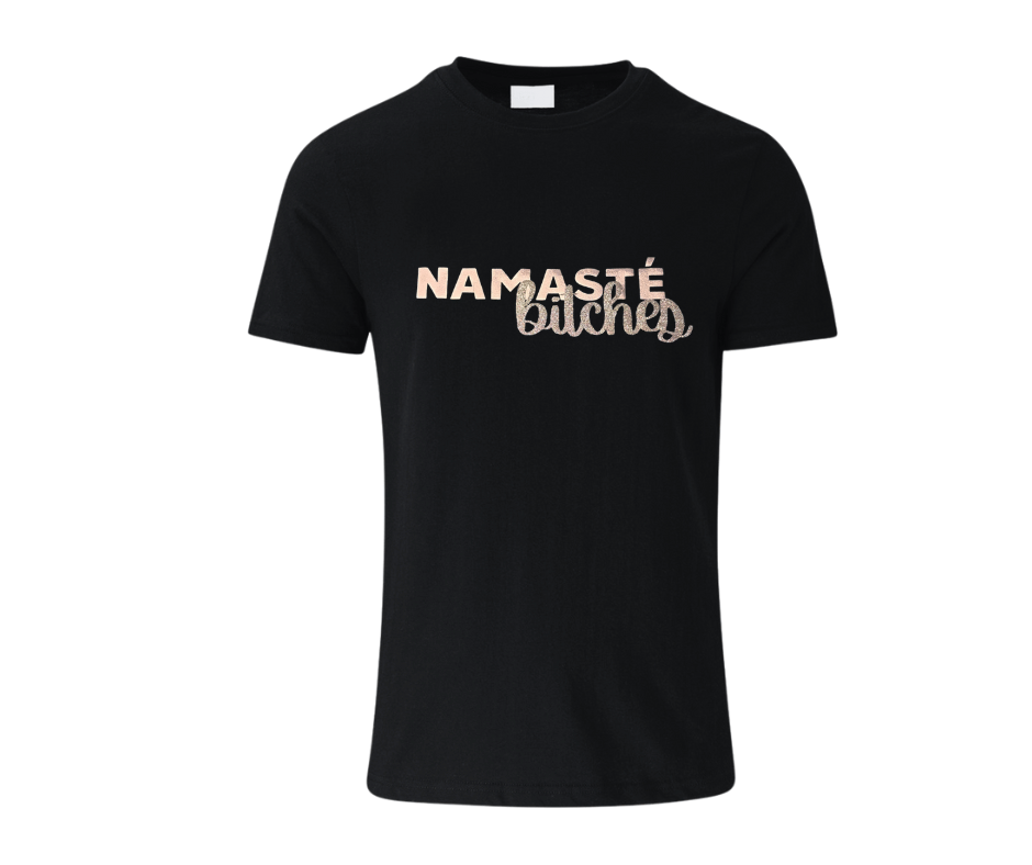 Our Namasté Bitches Tee is made for those who love a good yoga pose… and an even better punchline. Perfectly balancing sass and zen, this tee brings the calm and the chaos — all in one glittery statement.