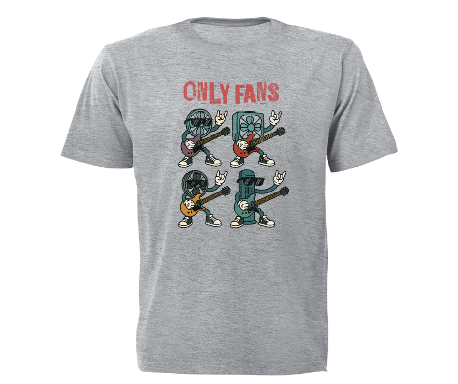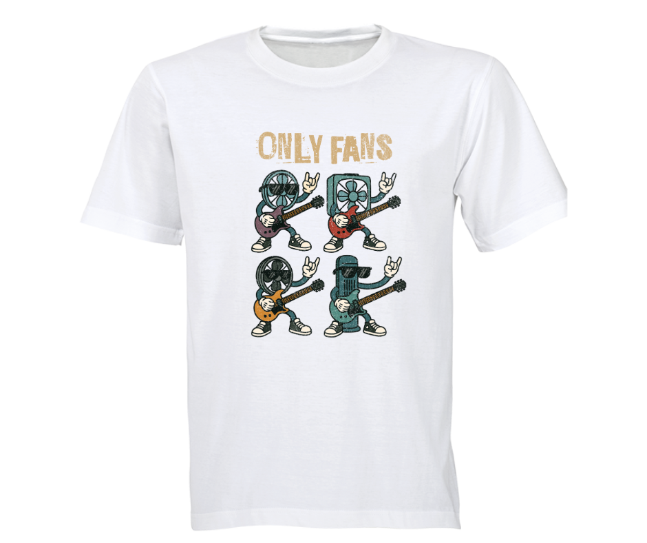 This hilarious tee isn’t what you think — unless you’re thinking of a bunch of electric fans jamming out in true rockstar fashion. Our “Only Fans” graphic tee is for those who appreciate a solid pun, a bit of quirky humour, and a breeze of personality.