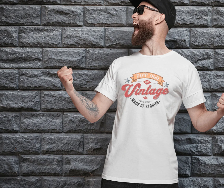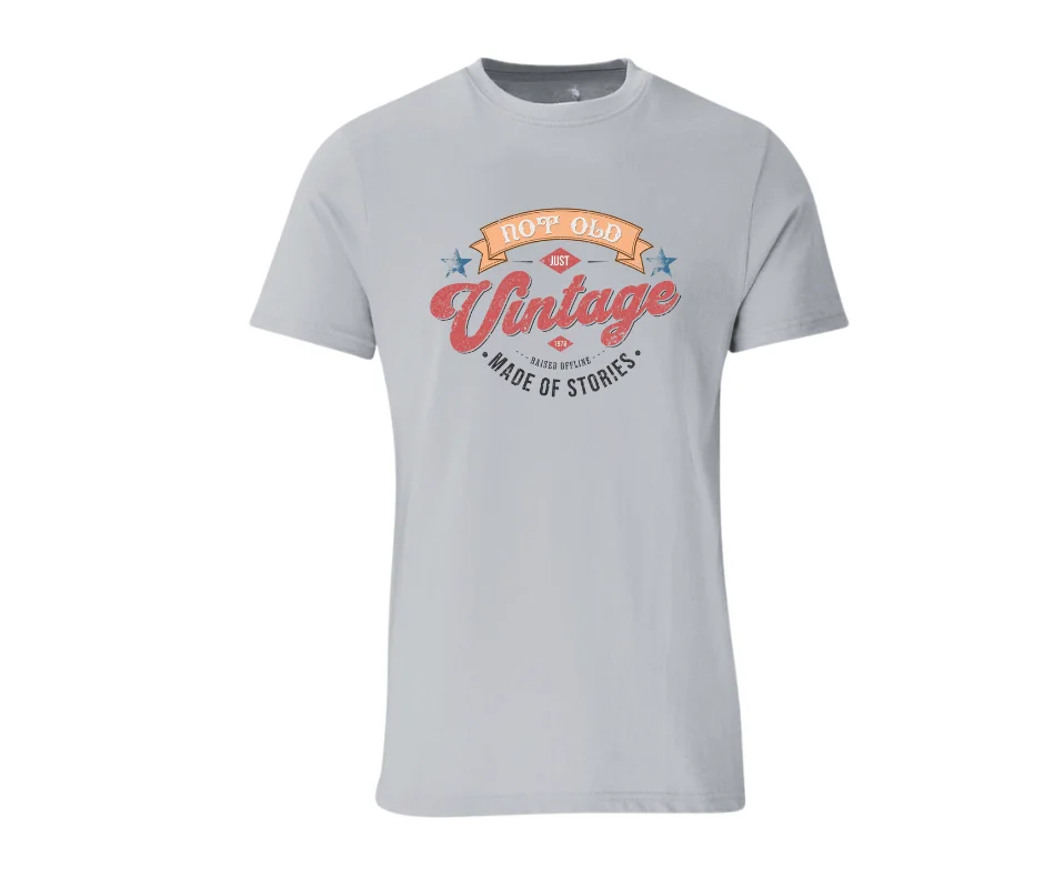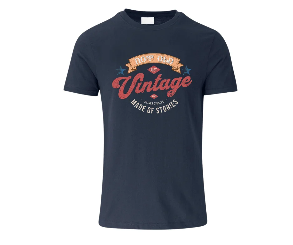 The “Rock Old Just Vintage – Made of Stories” T-shirt is for those who wear their years like a badge of honour. With its retro-inspired typography, distressed detailing, and classic colour palette, this tee celebrates experience, character, and a life well-lived.