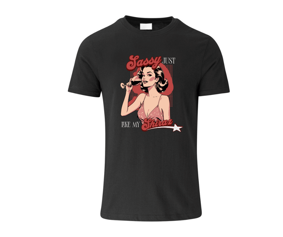 The “Sassy Just Like My Shiraz” tee is for the unapologetically confident, wine-loving soul who walks into a room and owns it—glass in hand, attitude included.