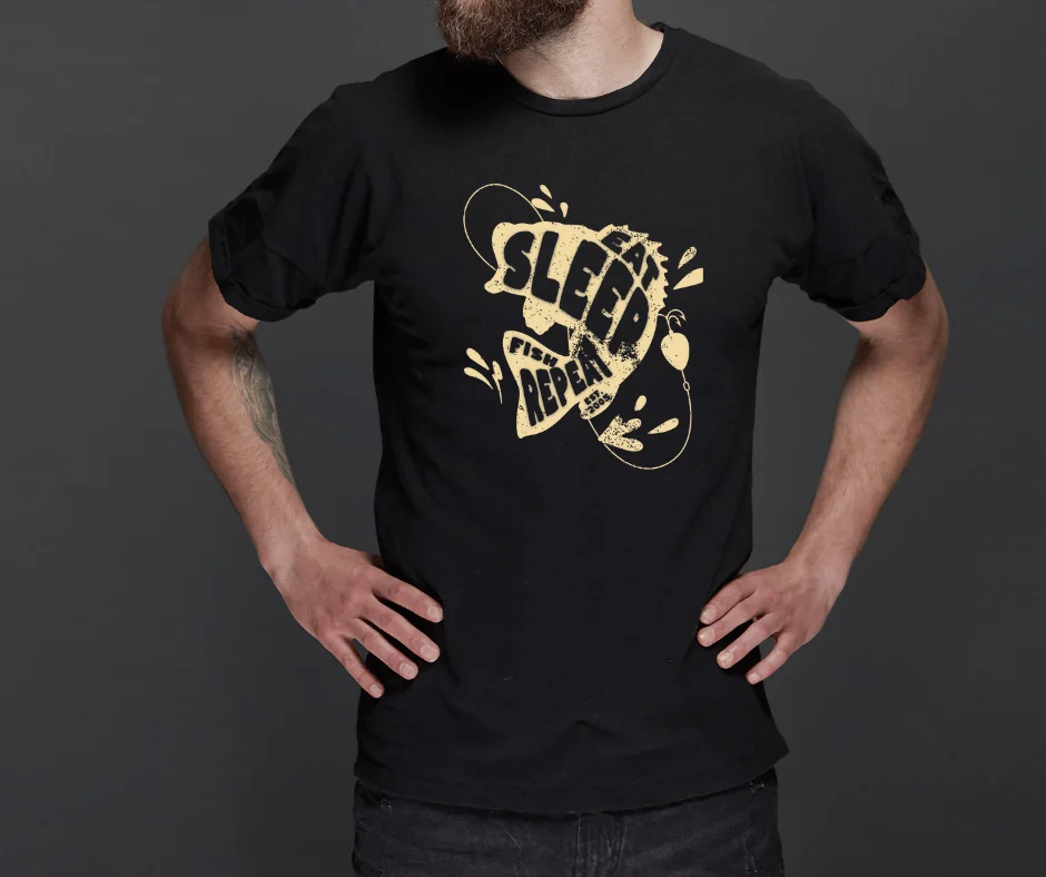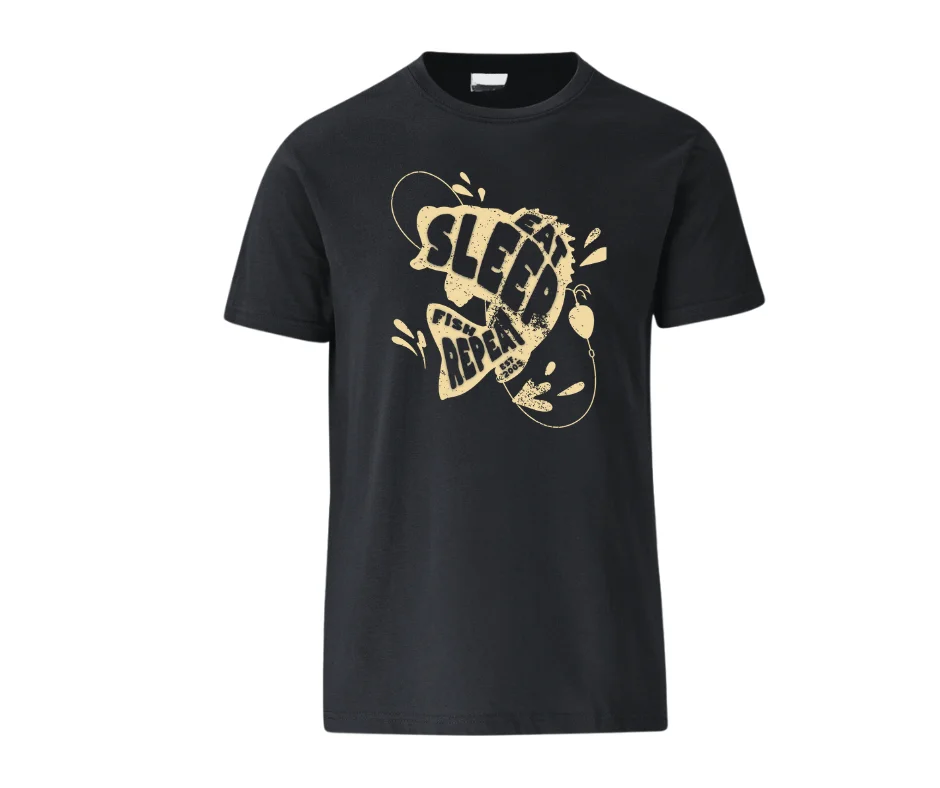The Sleep. Fish. Repeat. T-Shirt is made for anglers who structure their entire life around the next cast. Featuring a rugged, vintage-style design with fishing elements woven into the typography, this tee says exactly what you’re about — without you having to explain it.