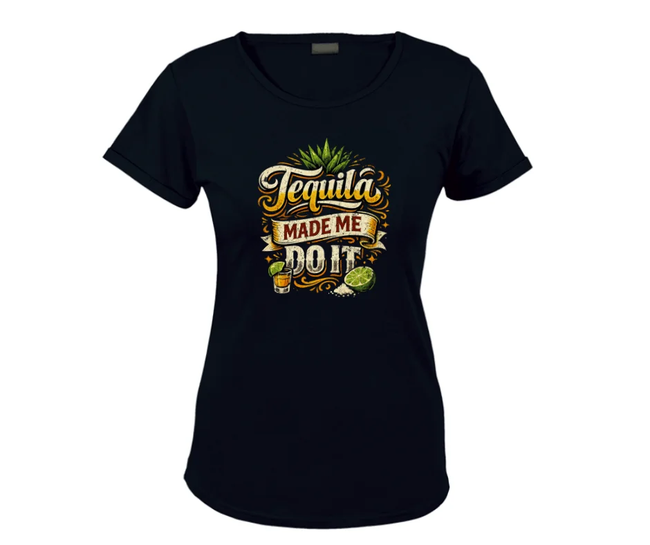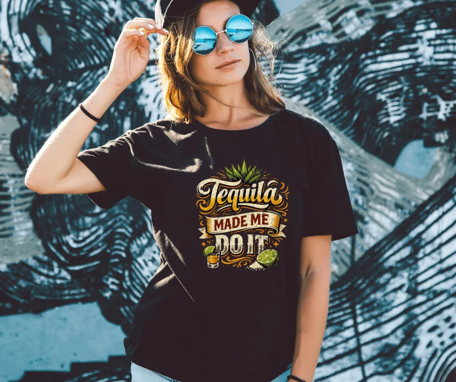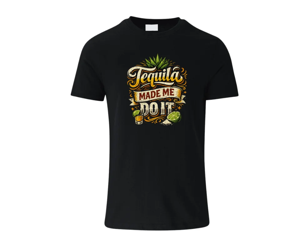 The “Tequila Made Me Do It” T-shirt is the ultimate party starter for those who know that lime, salt, and good decisions don’t always mix. Featuring bold vintage-style typography with agave, lime wedges, salt, and a classic tequila shot graphic, this tee brings the fiesta wherever you go.