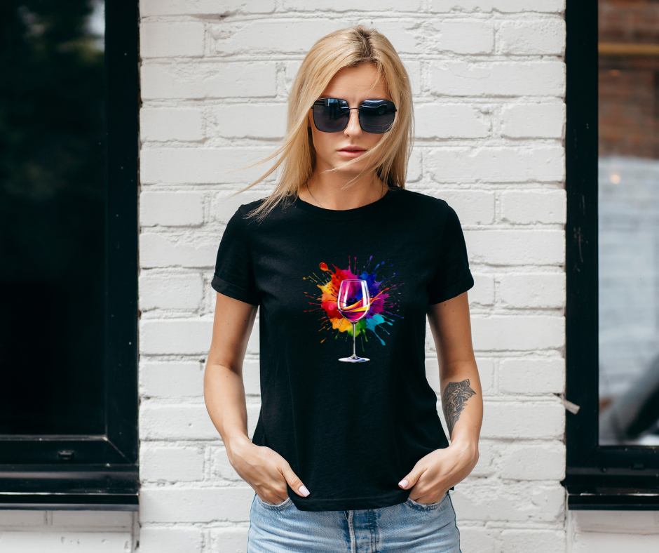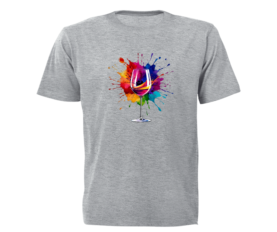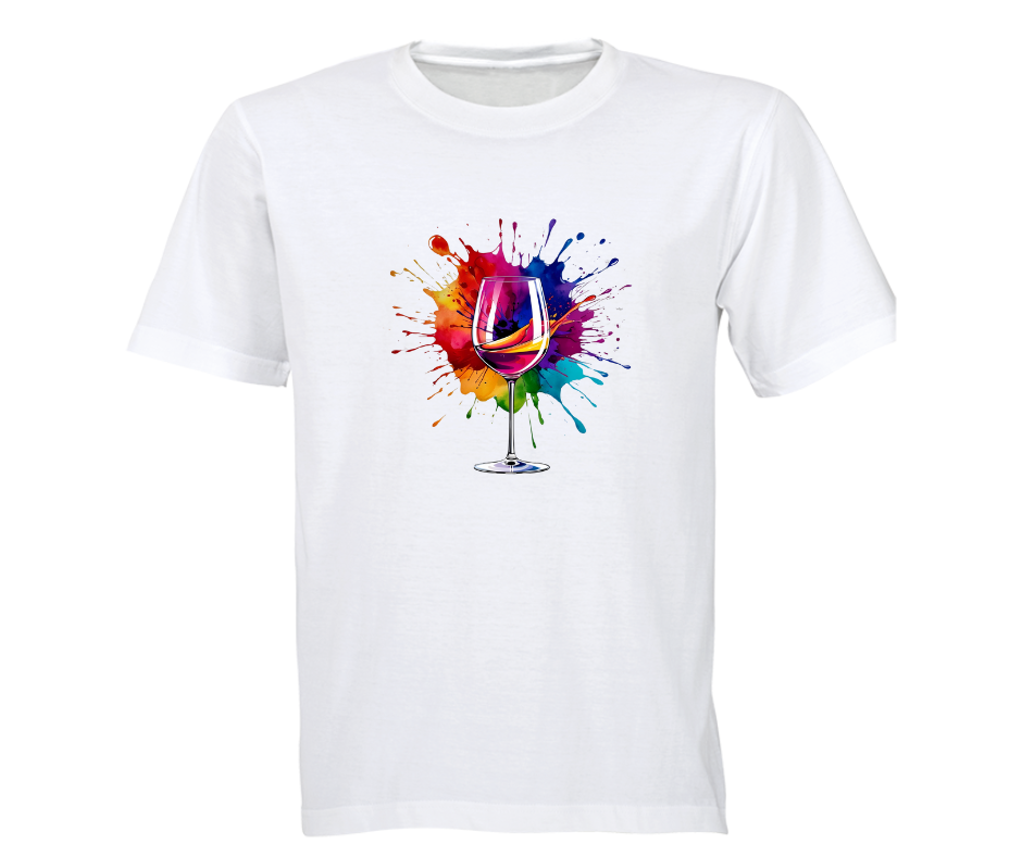 Colour outside the lines with this bold graphic featuring a wine glass against a vibrant paint splash.